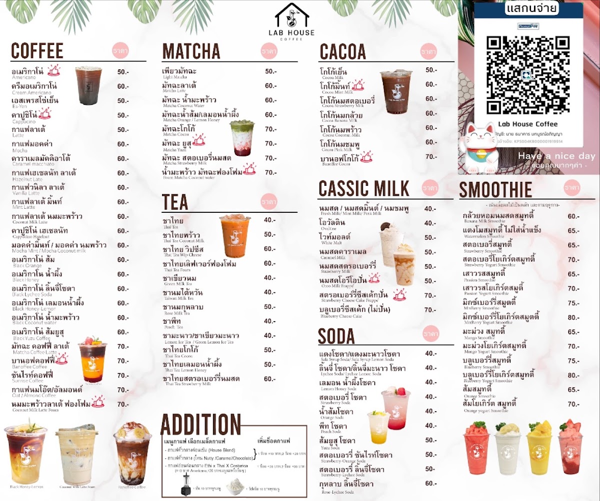 Welcome to Lab House Coffee, a cozy gem nestled in the heart of Samut Prakan. This charming café, located at 119/97 Soi Suksawat 37/3, welcomes visitors with a warm and inviting ambiance that feels just like home. Customers rave about the extensive drink selection, which includes highly praised options like the rich cappuccino and refreshing avocado-infused milk. The homemade pastries, such as the shio pan and croffle, showcase delightful flavors and textures that enhance your visit.